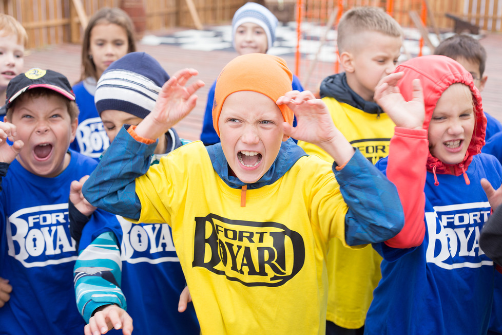 Взрослые проходят в банкетную зону. Детей встречает ведущий и участники попадают на Форт Боярд, где их ожидают очень страшные, опасные, командные и самое главное - эмоциональные испытания.